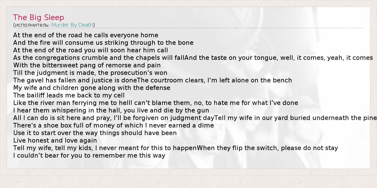 А как ты думаешь, о чем песня "The Big Sleep" ?