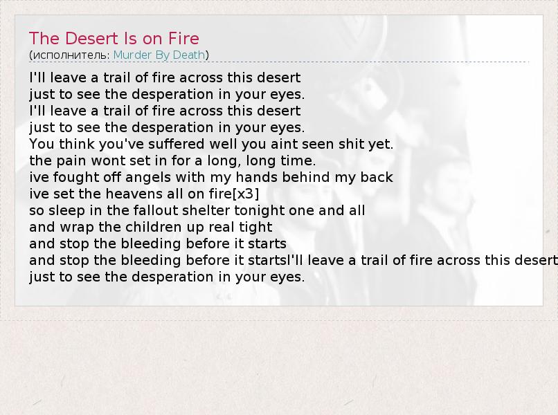 А как ты думаешь, о чем песня "The Desert Is on Fire" ?