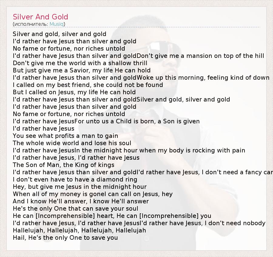 I'd rather have Jesus than silver and goldSilver and gold, silver and gold