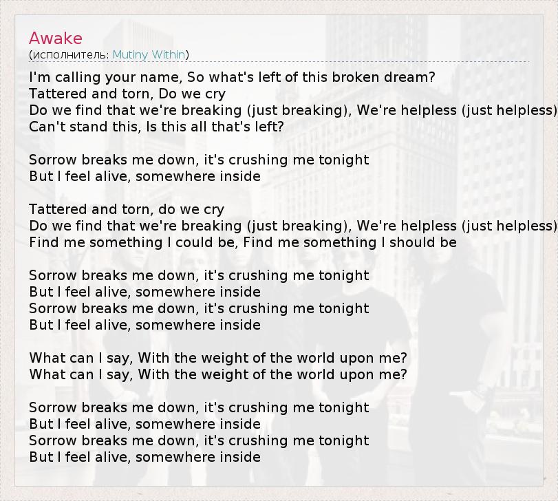 Это интересно:Mutiny Within (англ. бунт изнутри) — американская хеви-метал группа из города Эдисон, штат Нью-Джерси. Группа была основана в 2002 году басистом Эндрю Джейкобсом (Andrew Jacobs), первоначально, как кавер-коллектив группы Children of Bodom.Группа прошла через целый ряд трансформаций, пока окончательно не приобрела свой нынешний облик. Проведя поиски людей, которые бы соответствовали его требованиям, Джейкобс... продолжение