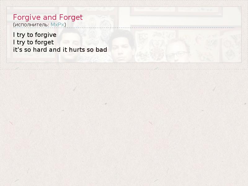 А как ты думаешь, о чем песня "Forgive and Forget" ?