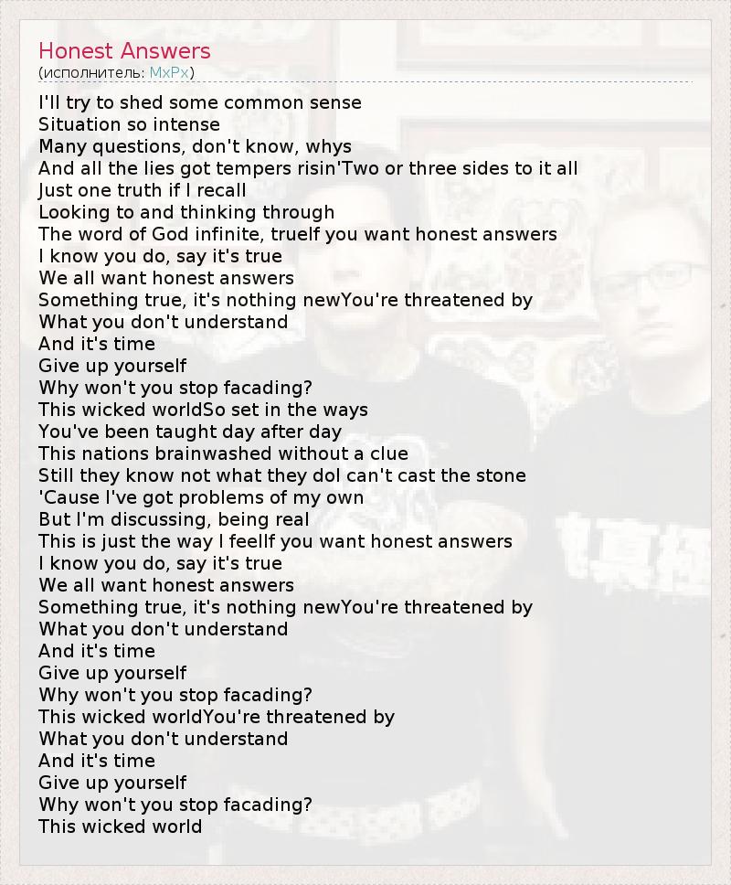 А как ты думаешь, о чем песня "Honest Answers" ?