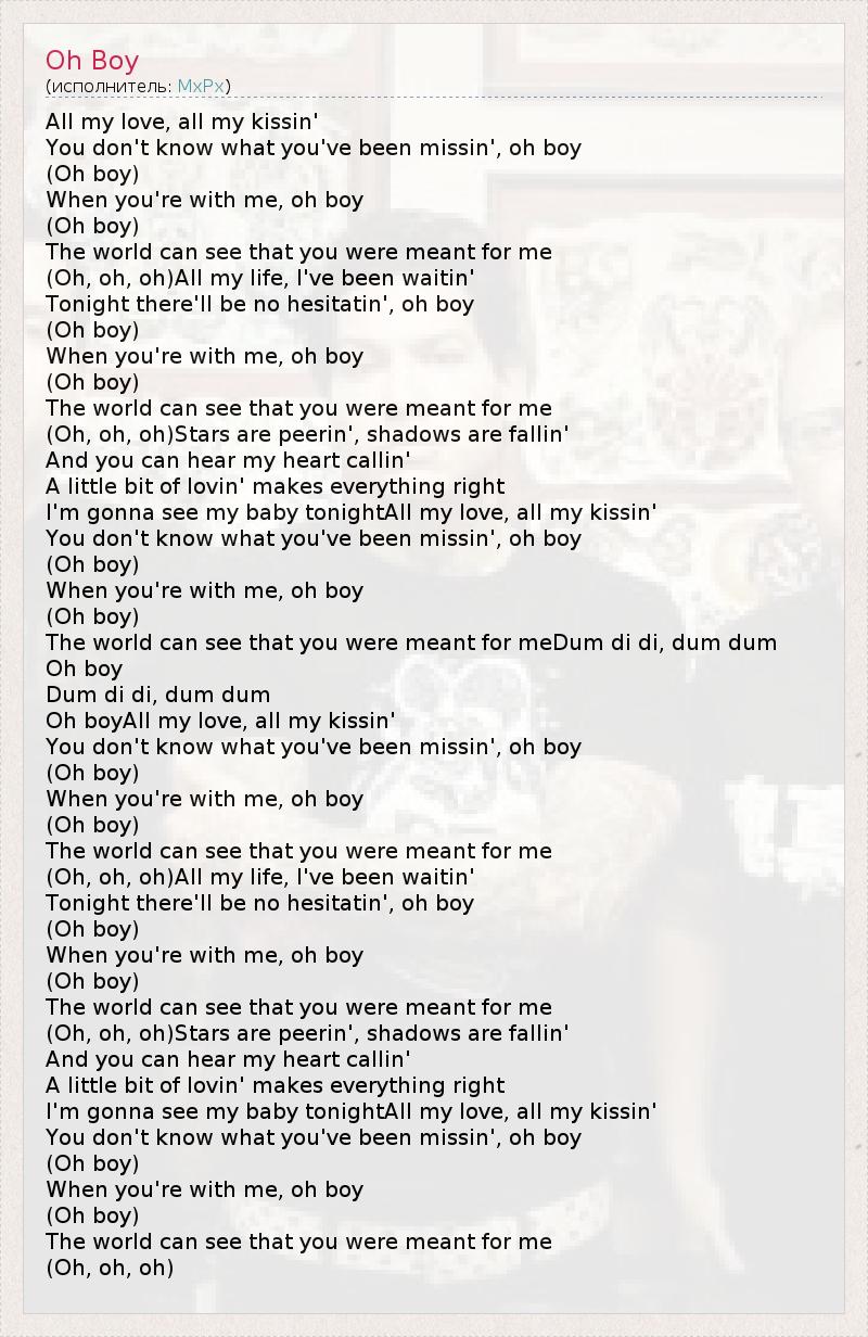 Oh boyAll my love, all my kissin'