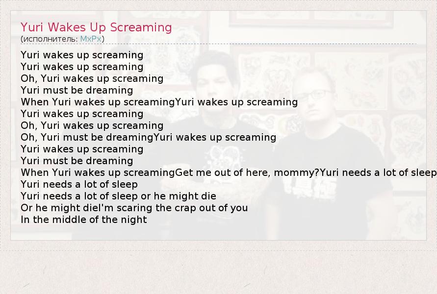 ГлавнаяИсполнителиMxPxYuri Wakes Up Screaming