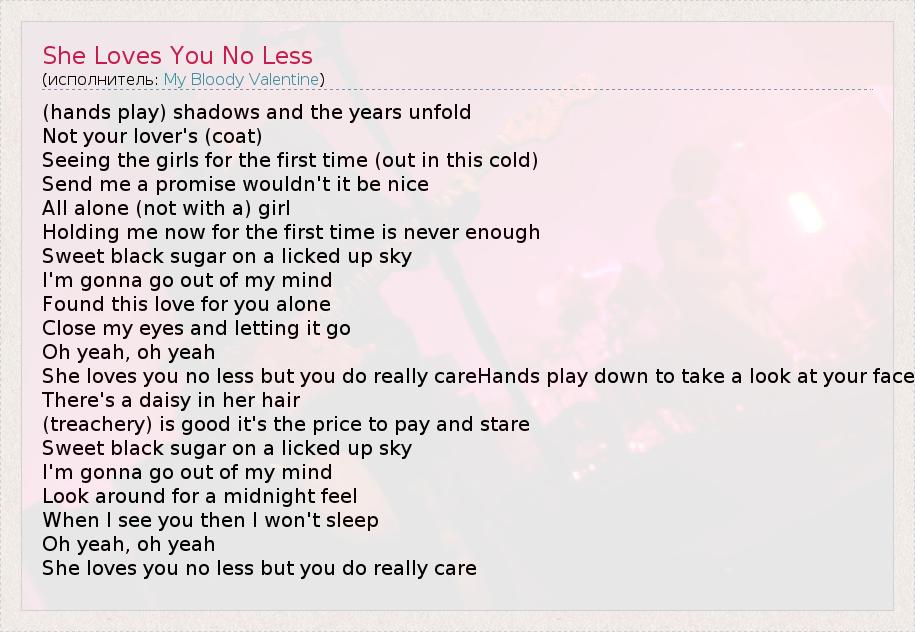 А как ты думаешь, о чем песня "She Loves You No Less" ?