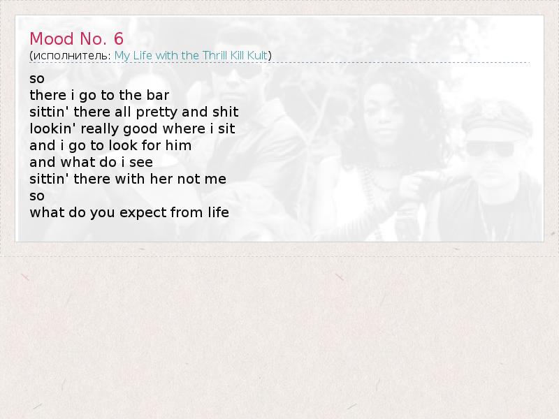 А как ты думаешь, о чем песня "Mood No. 6" ?