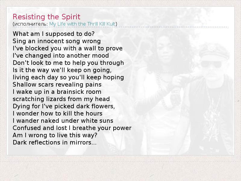 А как ты думаешь, о чем песня "Resisting the Spirit" ?