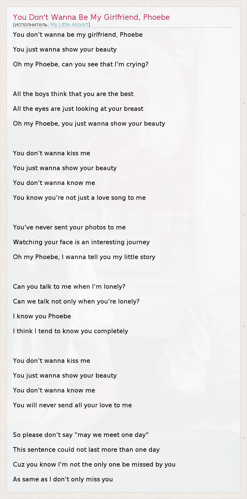 ГлавнаяИсполнителиMy Little AirportYou Don't Wanna Be My Girlfriend, Phoebe