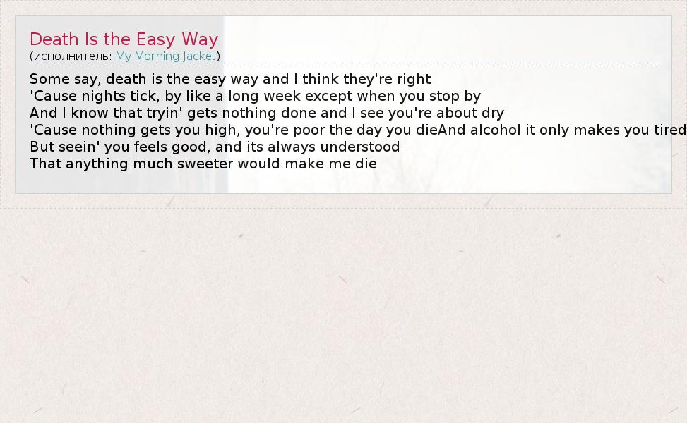 А как ты думаешь, о чем песня "Death Is the Easy Way" ?