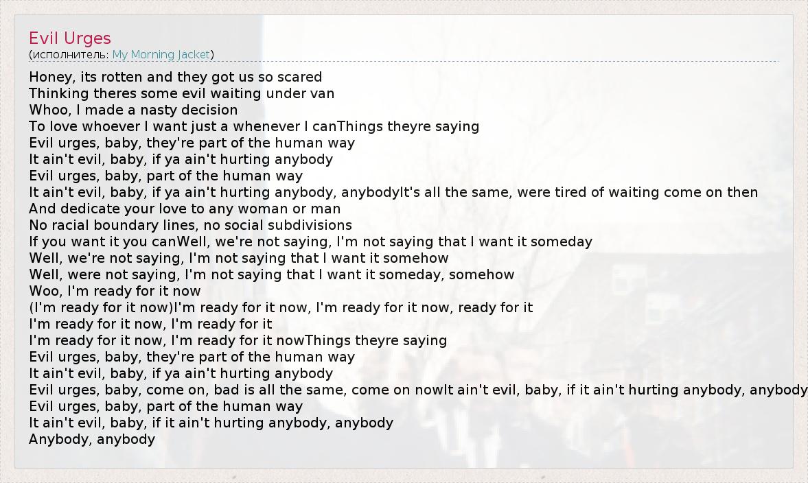 А как ты думаешь, о чем песня "Evil Urges" ?
