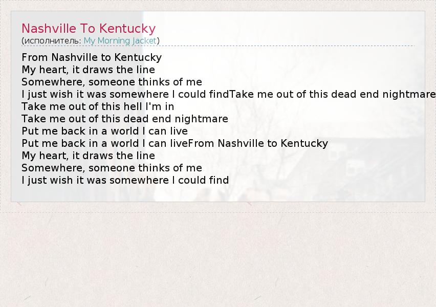 А как ты думаешь, о чем песня "Nashville To Kentucky" ?
