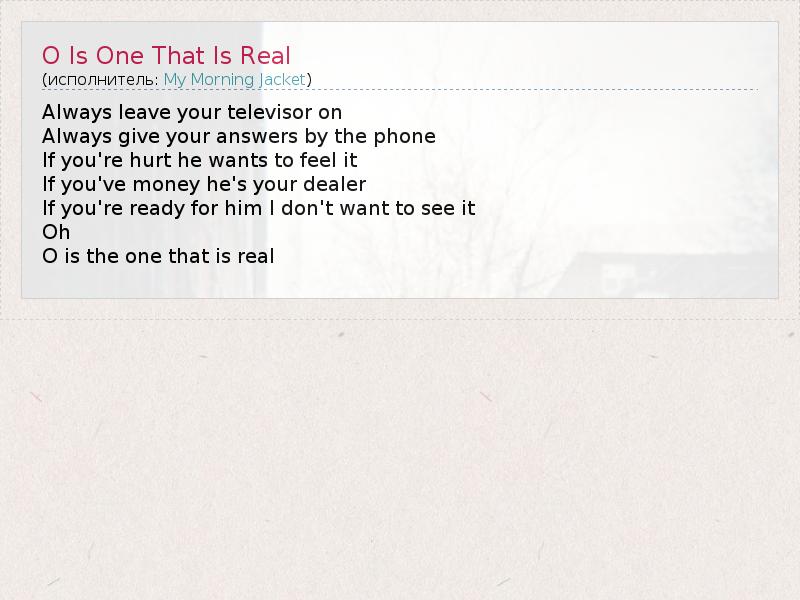 А как ты думаешь, о чем песня "O Is One That Is Real" ?