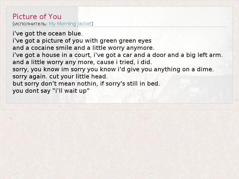 А как ты думаешь, о чем песня "Picture of You" ?