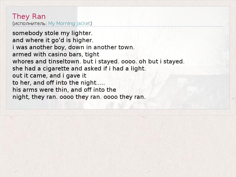 night, they ran. oooo they ran. oooo they ran.