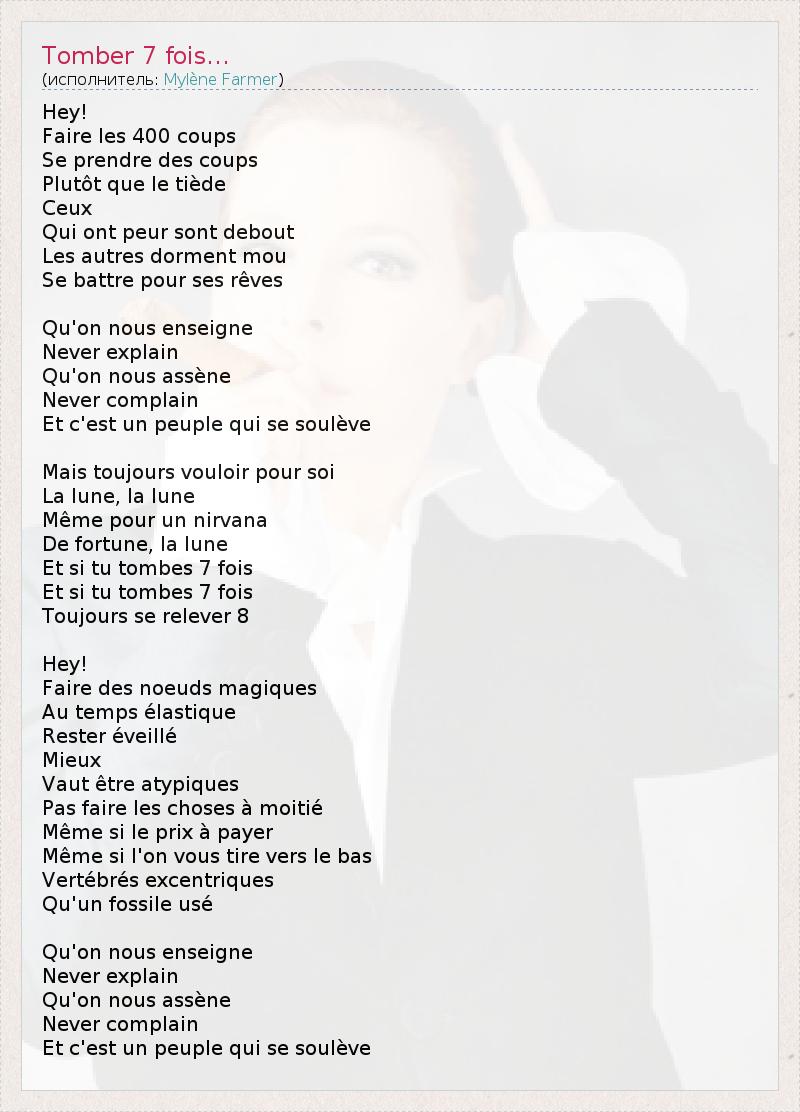 А как ты думаешь, о чем песня "Tomber 7 fois..." ?