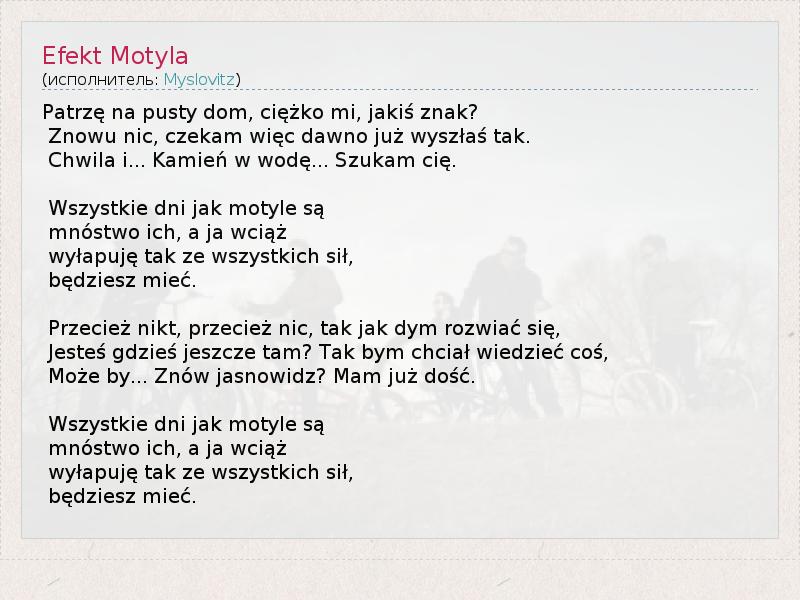 А как ты думаешь, о чем песня "Efekt Motyla" ?