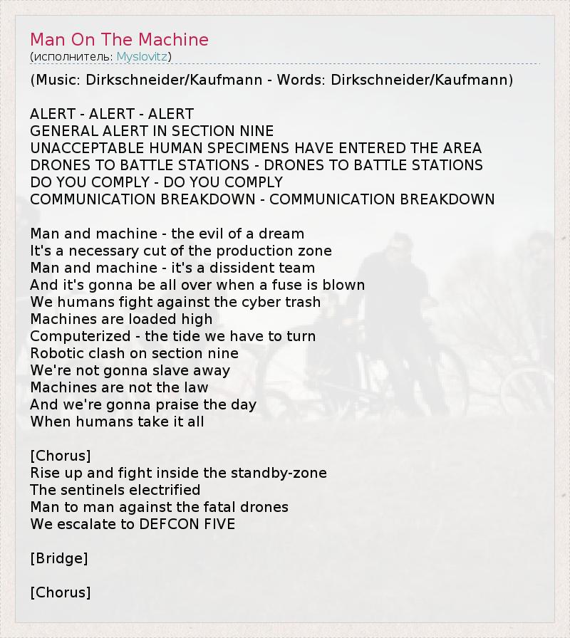 А как ты думаешь, о чем песня "Man On The Machine" ?