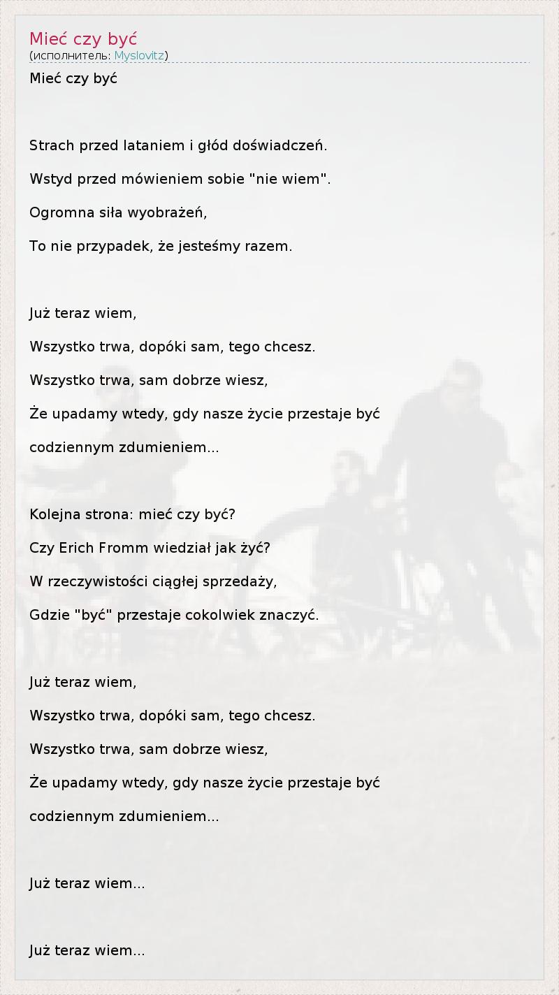 А как ты думаешь, о чем песня "Mieć czy być" ?