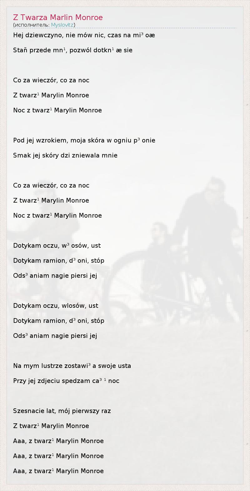 ГлавнаяИсполнителиMyslovitzZ Twarza Marlin Monroe