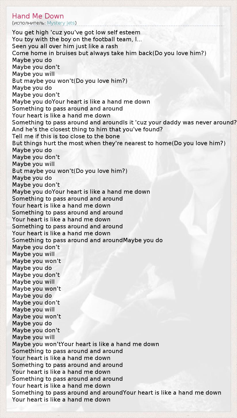 А как ты думаешь, о чем песня "Hand Me Down" ?