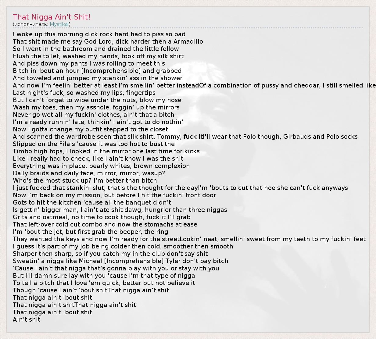 А как ты думаешь, о чем песня "That Nigga Ain't Shit!" ?