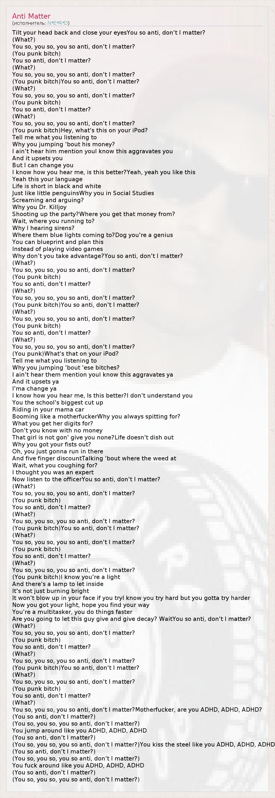 А как ты думаешь, о чем песня "Anti Matter" ?