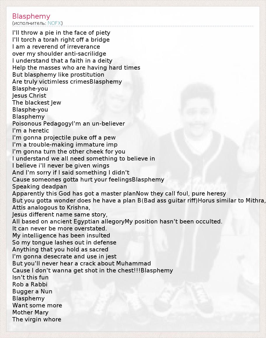 А как ты думаешь, о чем песня "Blasphemy" ?