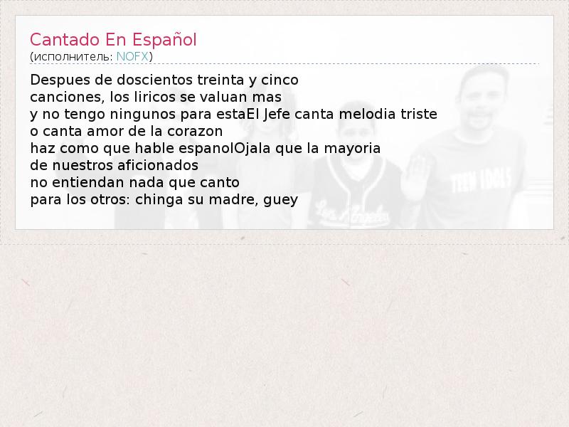 А как ты думаешь, о чем песня "Cantado En Español" ?