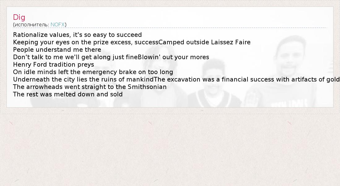 Это интересно:NOFX («НоуЭфЭкс») — группа из Сан-Франциско, штат Калифорния, образованная в 1983 г.Изначально группа состояла из вокалиста Фэт Майка (Настоящее имя - Майк Бёркетт), барабанщика Эрика Сэндина и гитариста Эрика Мэлвина.С 1991 г. вторым гитаристом и трубачом стал Эль Хэфе.Тексты группы, нередко саркастические, посвящены политике, обществу, различным субкультурам, расизму, звукозаписывающей... продолжение