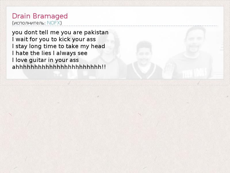 А как ты думаешь, о чем песня "Drain Bramaged" ?