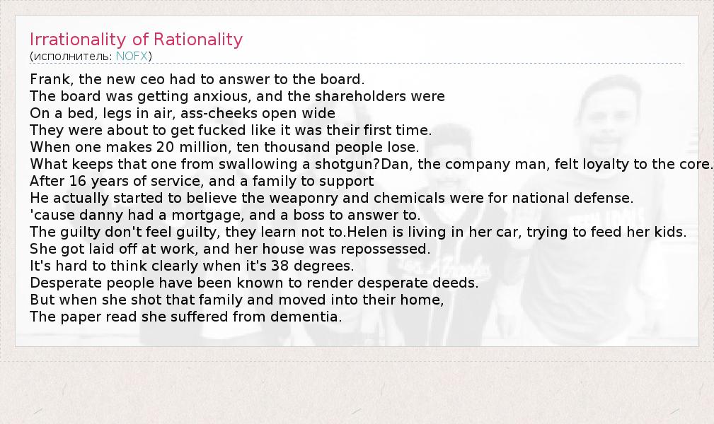 ГлавнаяИсполнителиNOFXIrrationality of Rationality