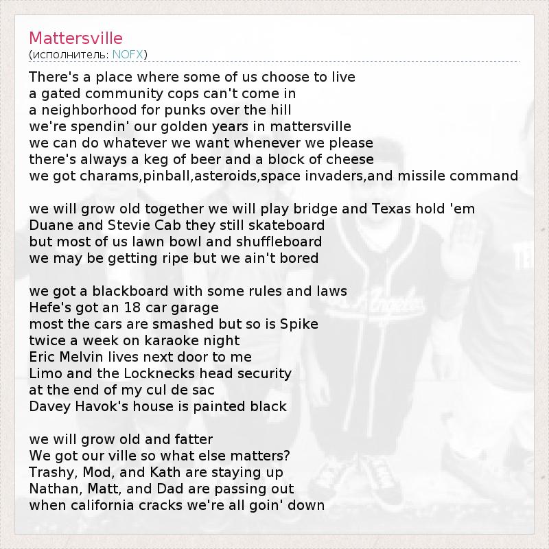 А как ты думаешь, о чем песня "Mattersville" ?