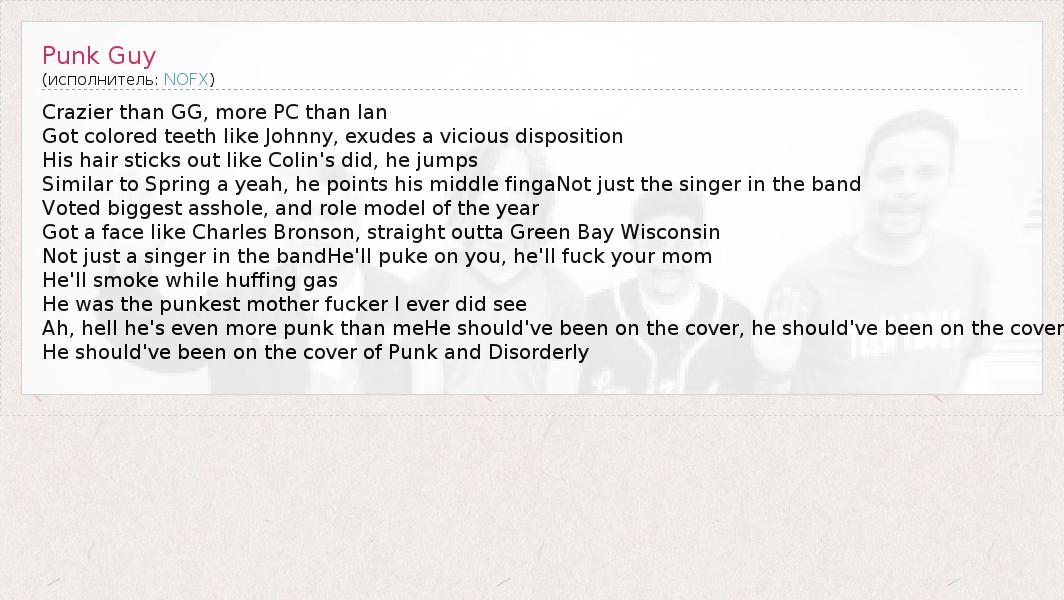 А как ты думаешь, о чем песня "Punk Guy" ?