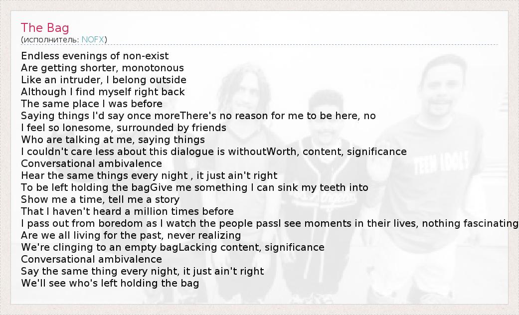А как ты думаешь, о чем песня "The Bag" ?