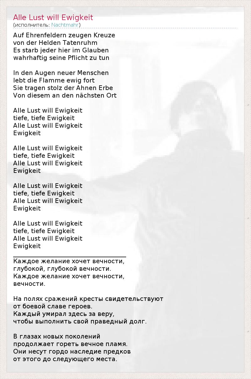 ГлавнаяИсполнителиNachtmahrAlle Lust will Ewigkeit