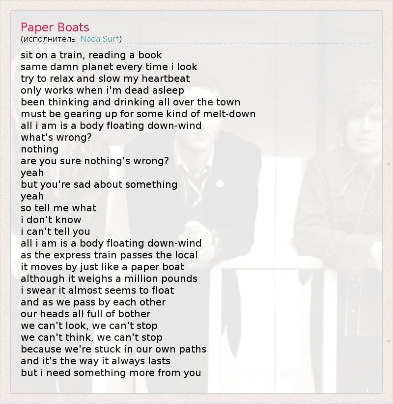 А как ты думаешь, о чем песня "Paper Boats" ?