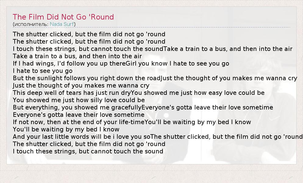ГлавнаяИсполнителиNada SurfThe Film Did Not Go 'Round