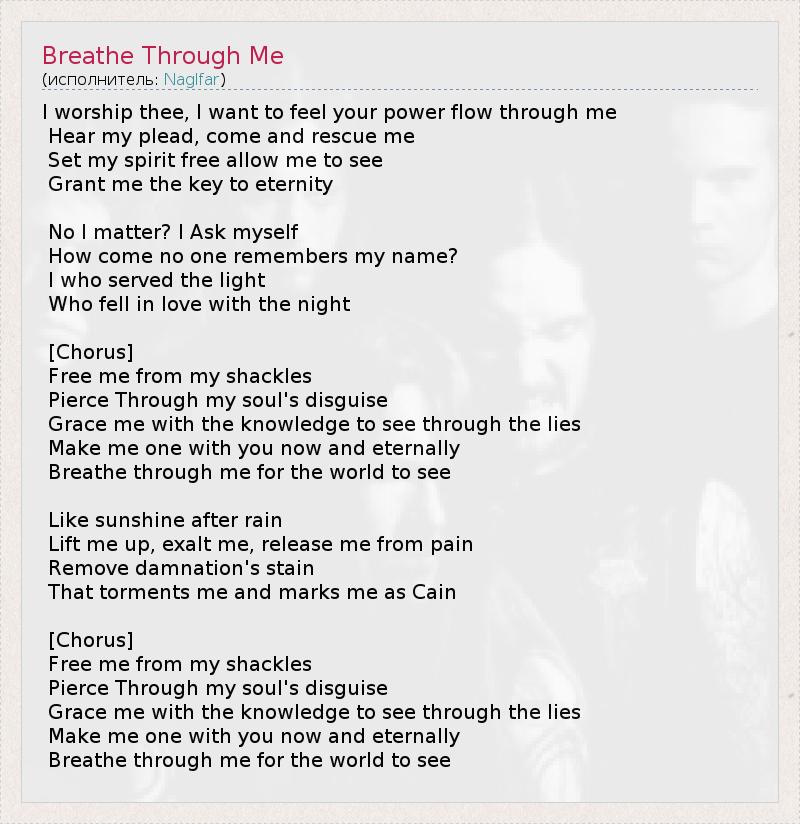 А как ты думаешь, о чем песня "Breathe Through Me" ?