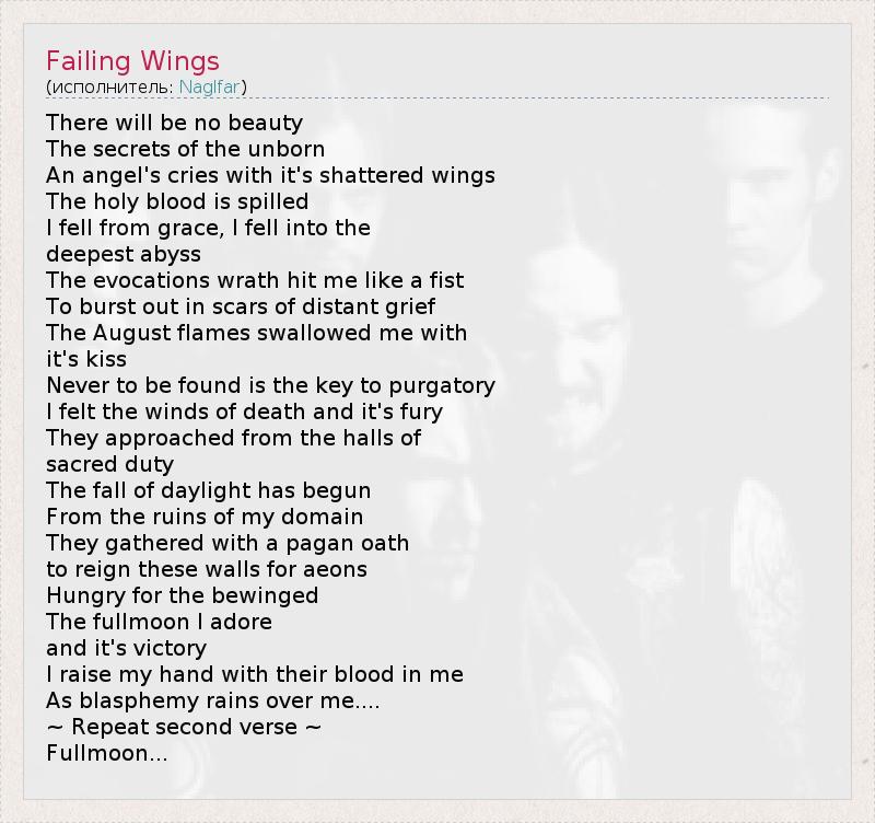А как ты думаешь, о чем песня "Failing Wings" ?