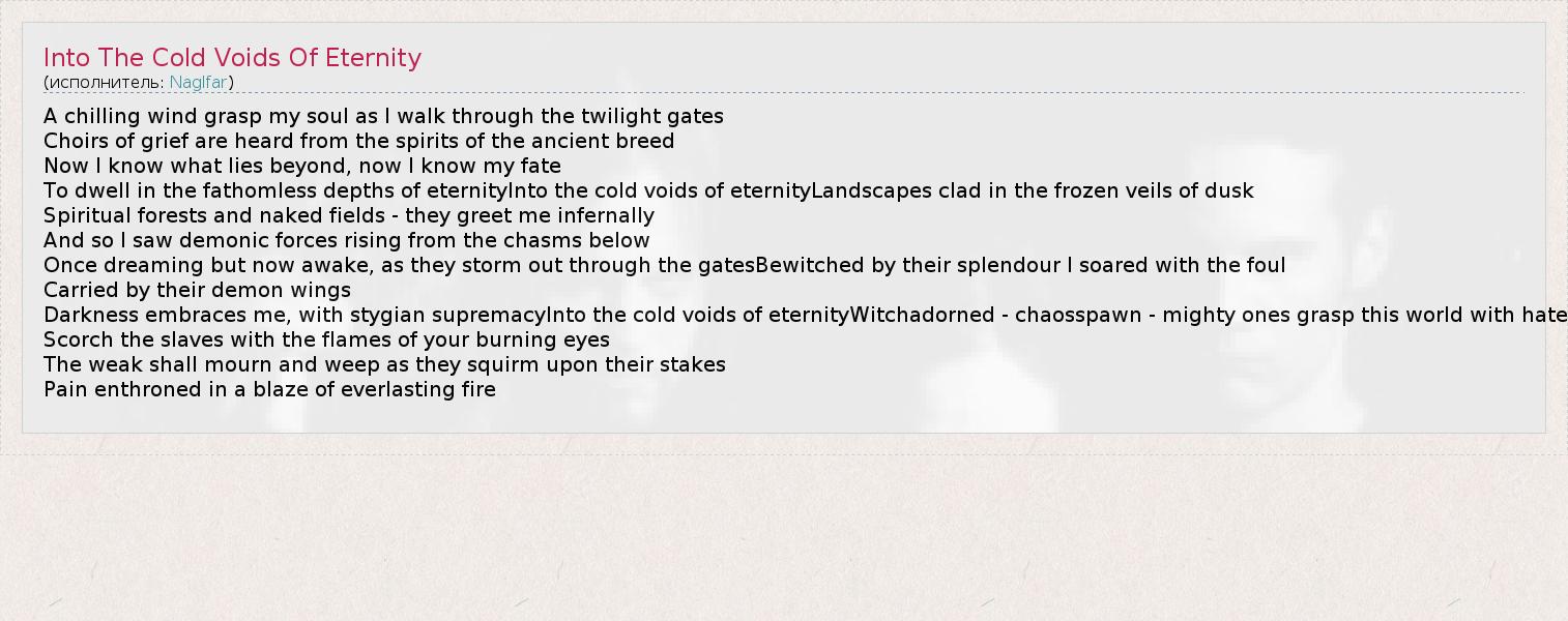 А как ты думаешь, о чем песня "Into The Cold Voids Of Eternity" ?