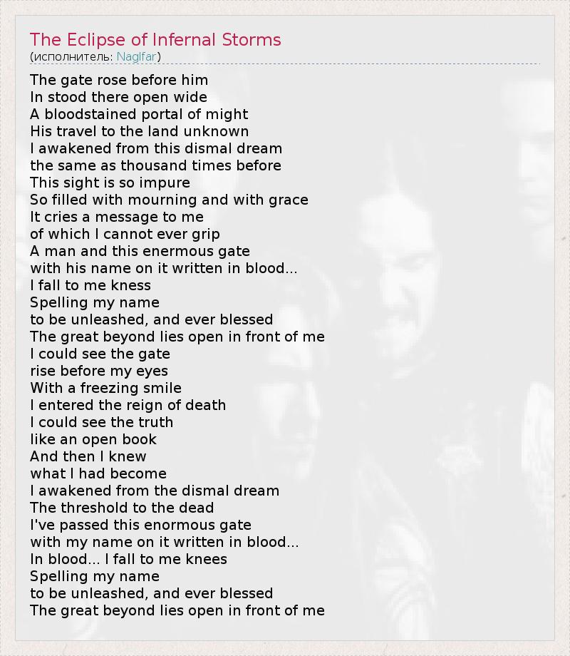 А как ты думаешь, о чем песня "The Eclipse of Infernal Storms" ?