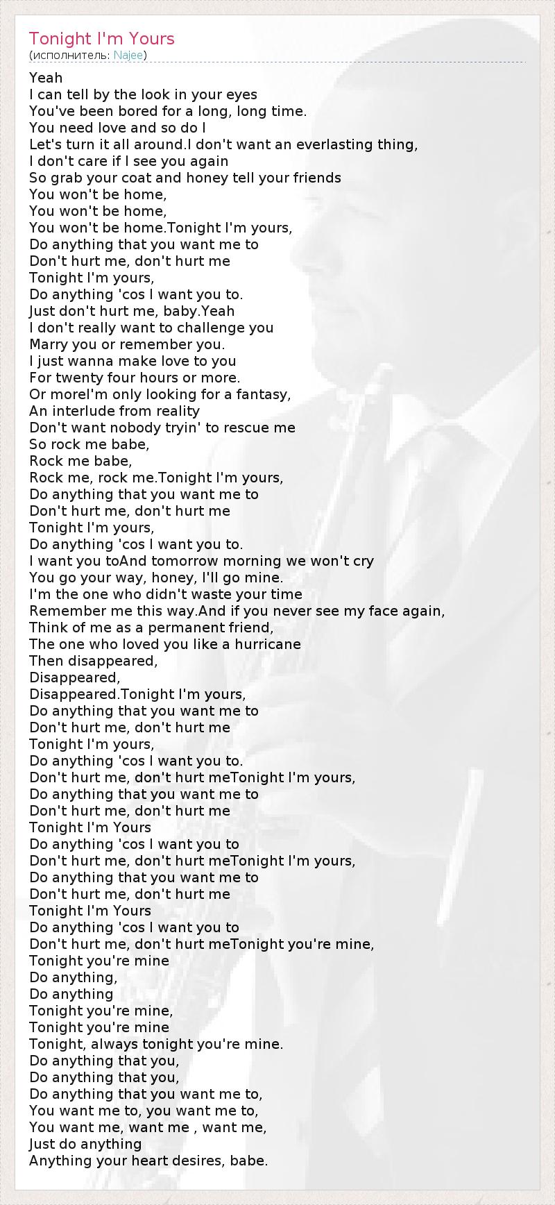 А как ты думаешь, о чем песня "Tonight I'm Yours" ?