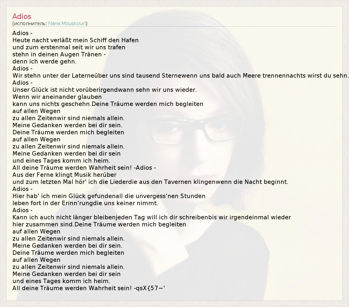 und zum letzten Mal hör' ich die Liederdie aus den Tavernen klingenwenn die Nacht beginnt.