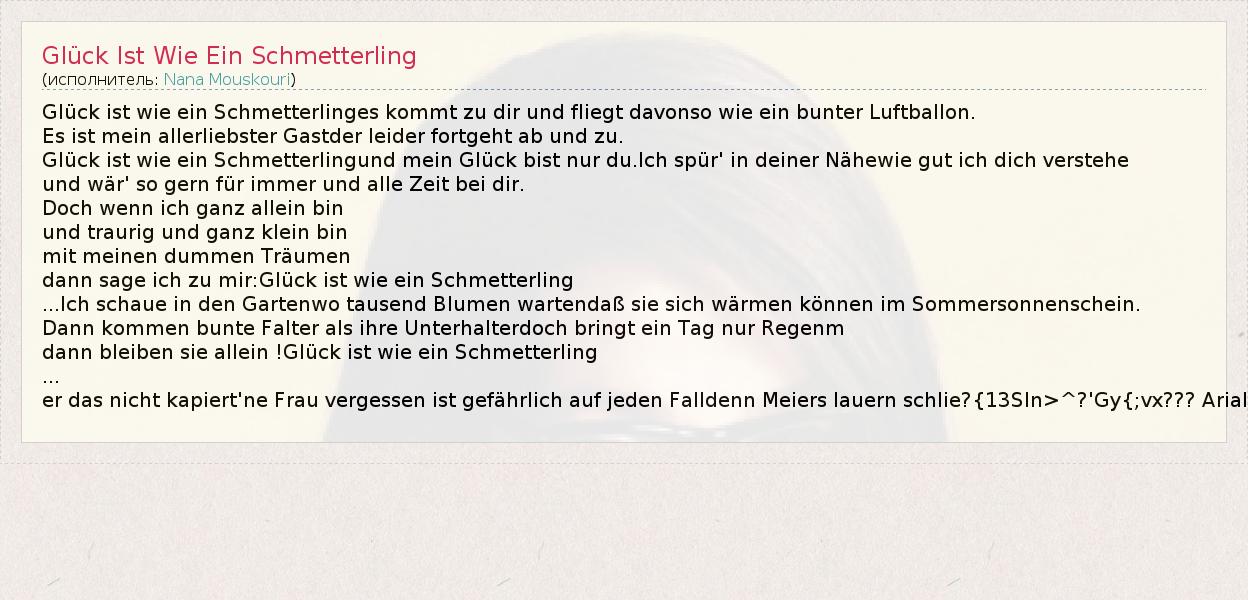 ГлавнаяИсполнителиNana MouskouriGlück Ist Wie Ein Schmetterling