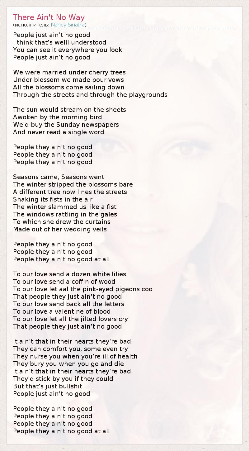 А как ты думаешь, о чем песня "There Ain't No Way" ?