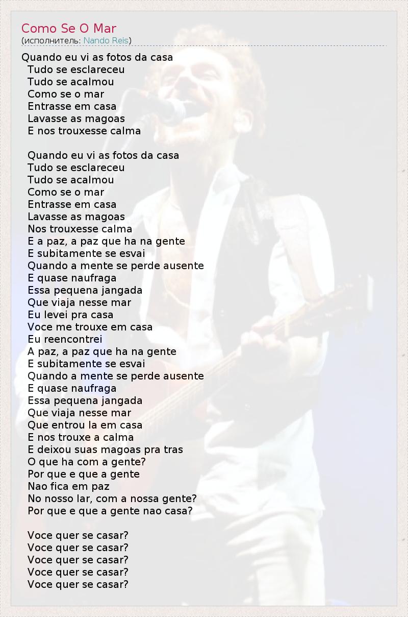 А как ты думаешь, о чем песня "Como Se O Mar" ?