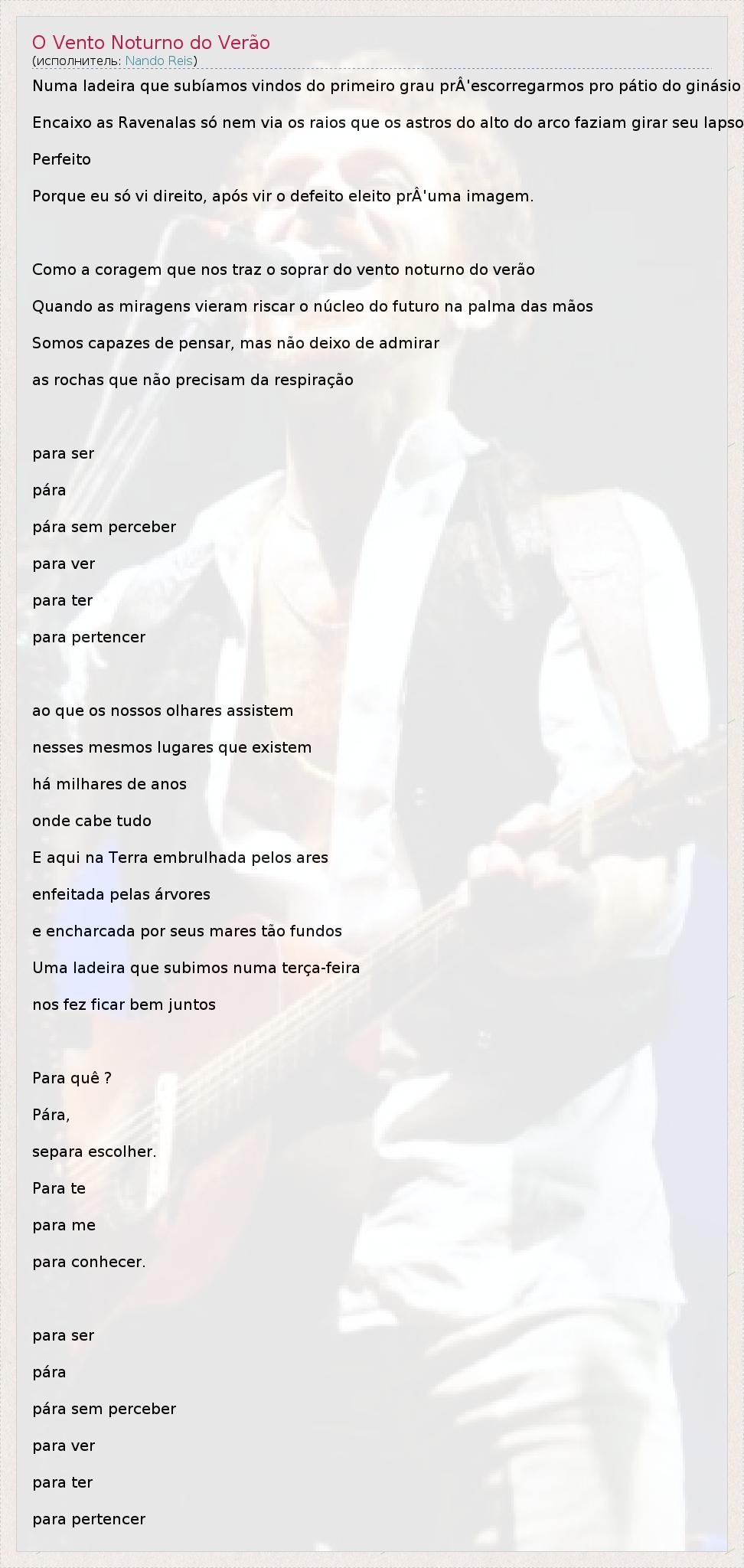 ГлавнаяИсполнителиNando ReisO Vento Noturno do Verão