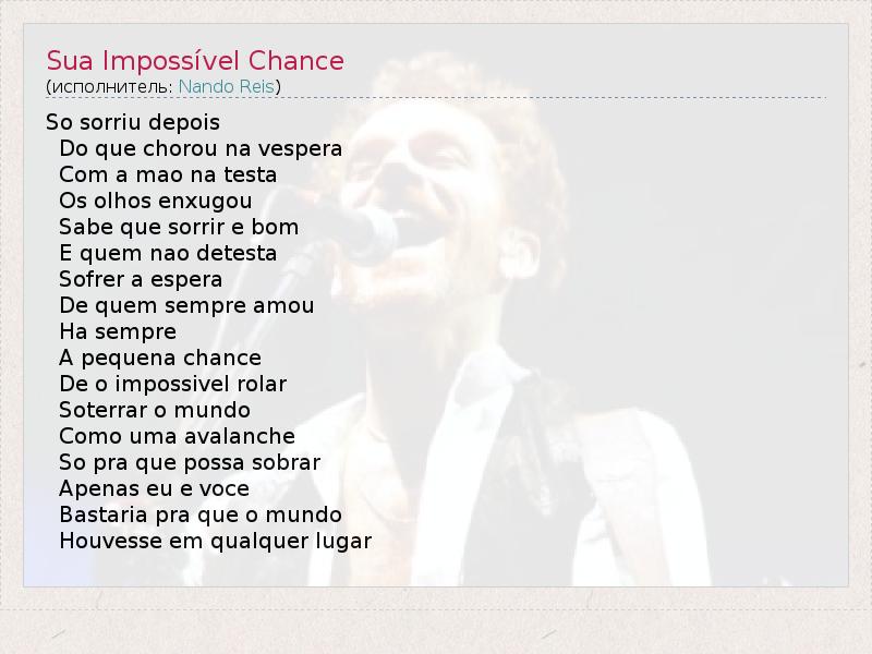 А как ты думаешь, о чем песня "Sua Impossível Chance" ?