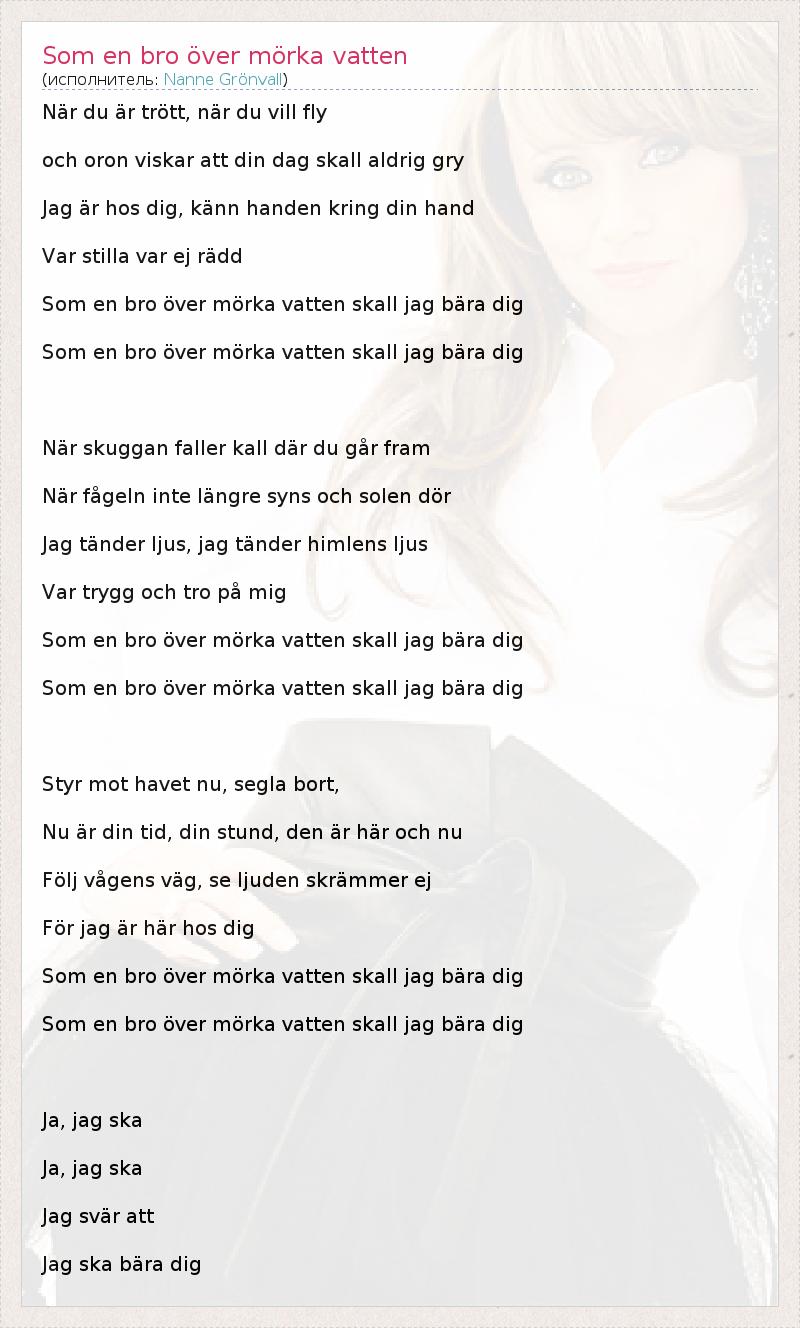 А как ты думаешь, о чем песня "Som en bro över mörka vatten" ?