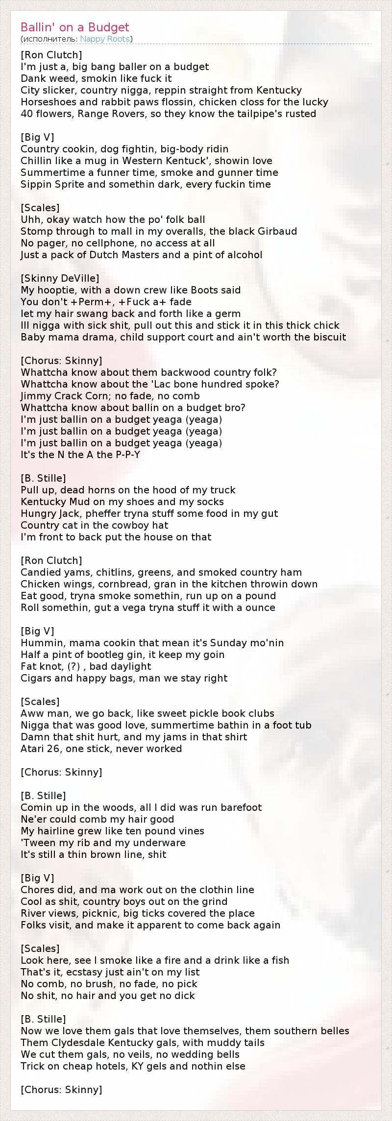 А как ты думаешь, о чем песня "Ballin' on a Budget" ?